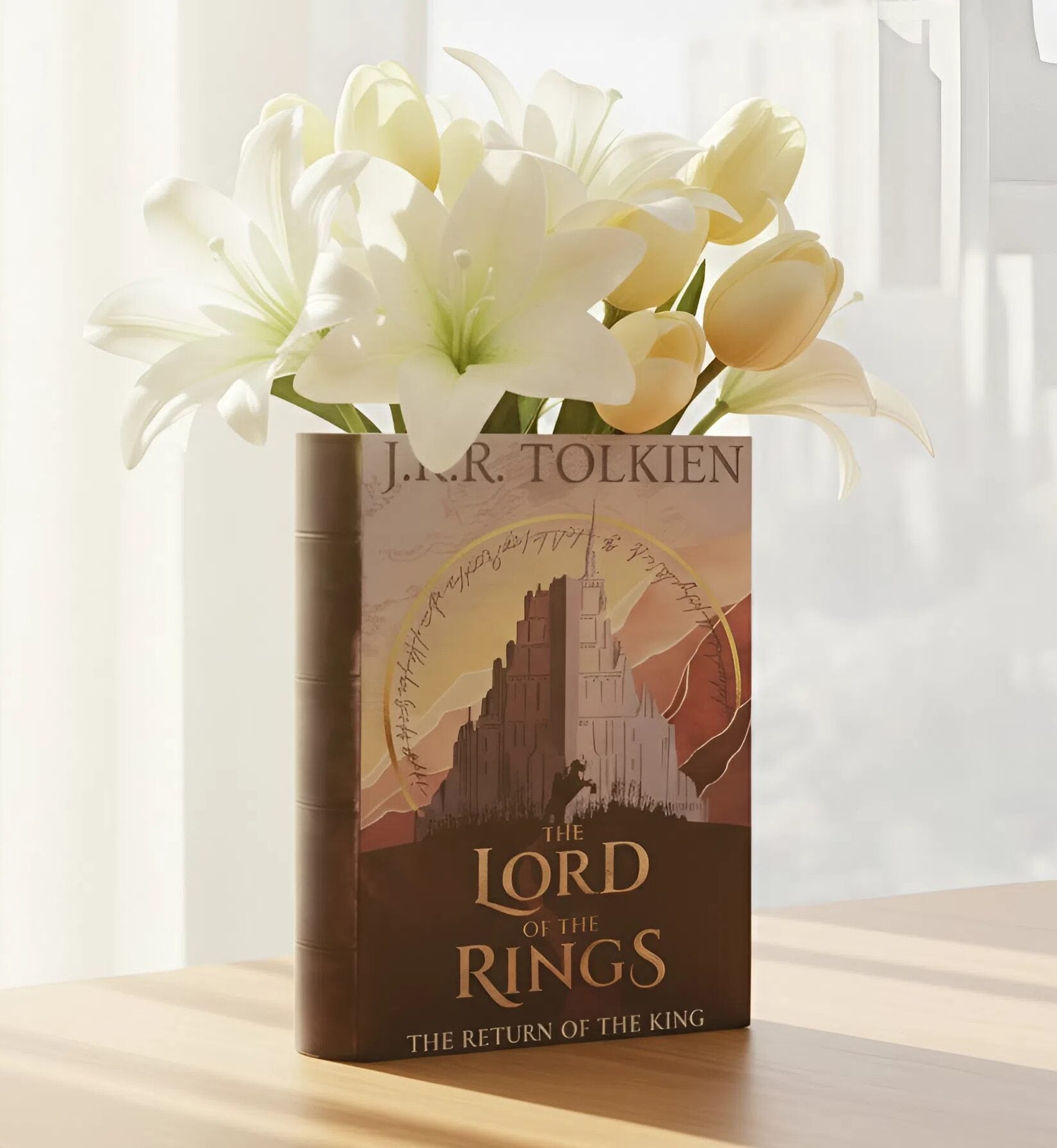 A book-shaped acrylic vase inspired by The Lord of the Rings, bringing the spirit of adventure and fellowship into your home.